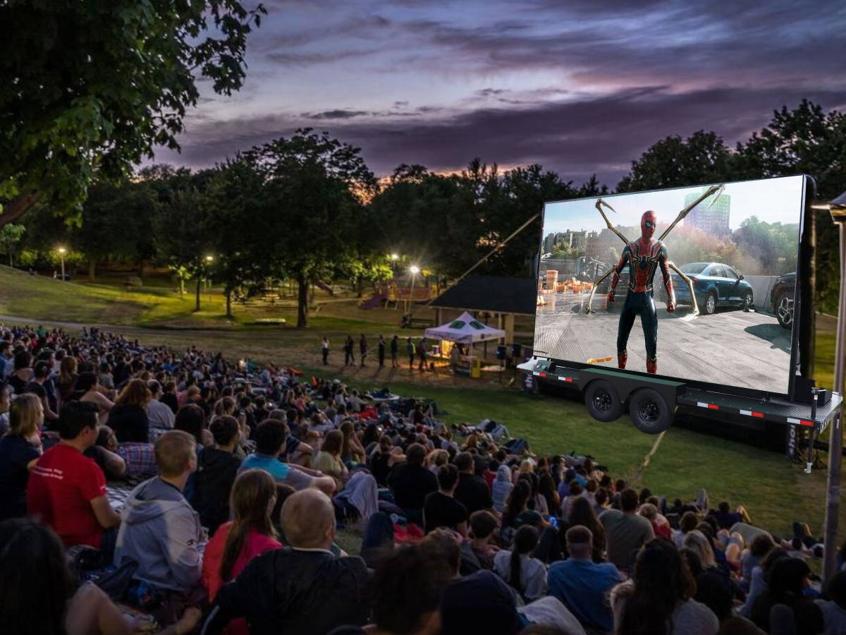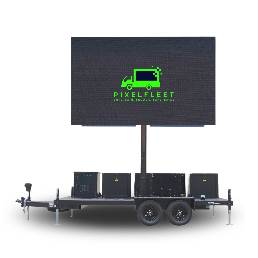 We Roll Up. Trailer-mounted LED screen delivered and setup by pros.
